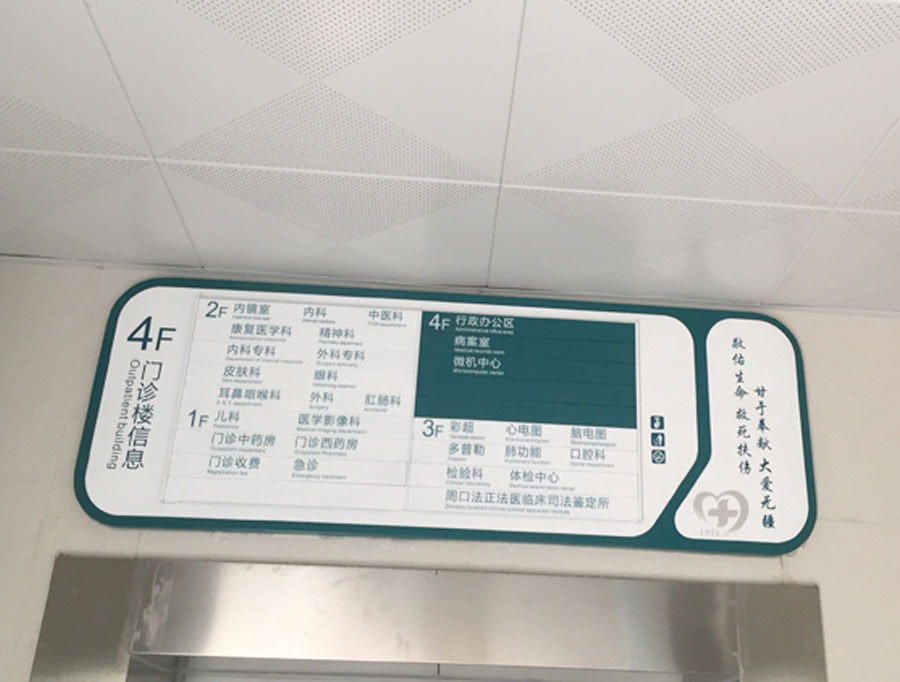 某某縣人民醫院標識標牌制作案例+安裝實景圖